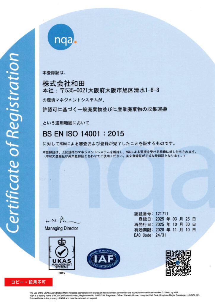 株式会社和田は、許認可に基づき一般廃棄物及び産業廃棄物の収集・運搬を行なっています。